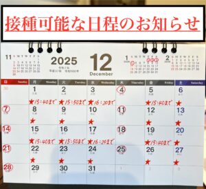 【12月の「プラセンタ注射」「美白・美肌注射」「にんにく注射」接種可能な日程のお知らせ】