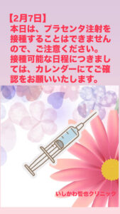 【2月の「プラセンタ注射」「美白・美肌注射」「にんにく注射」接種可能な日程のお知らせ】